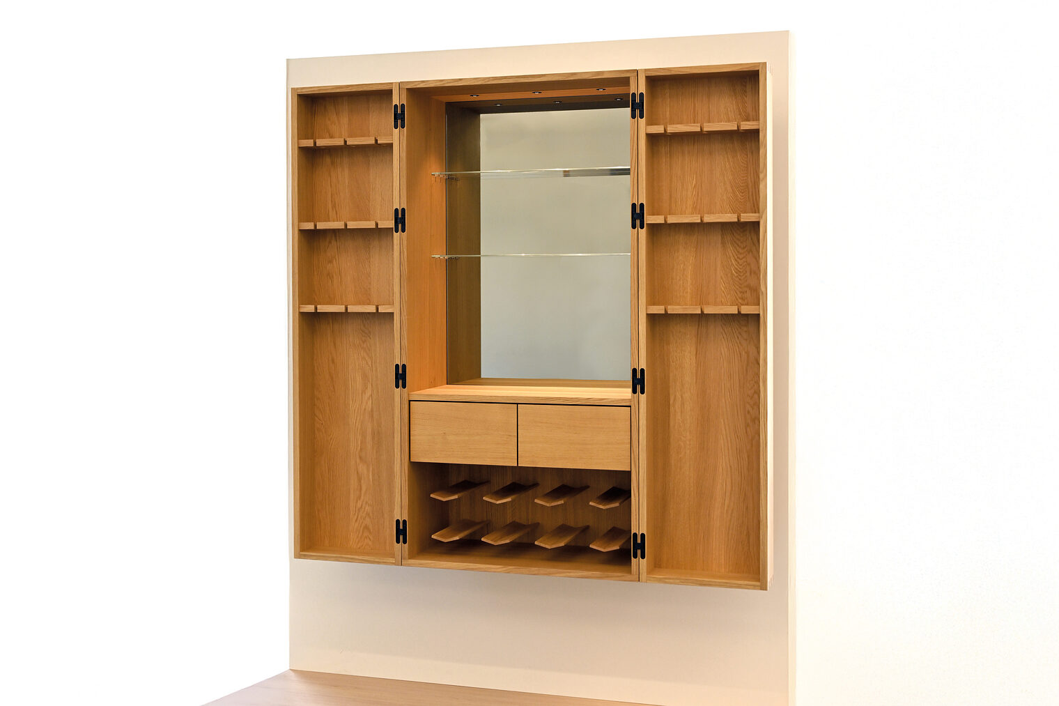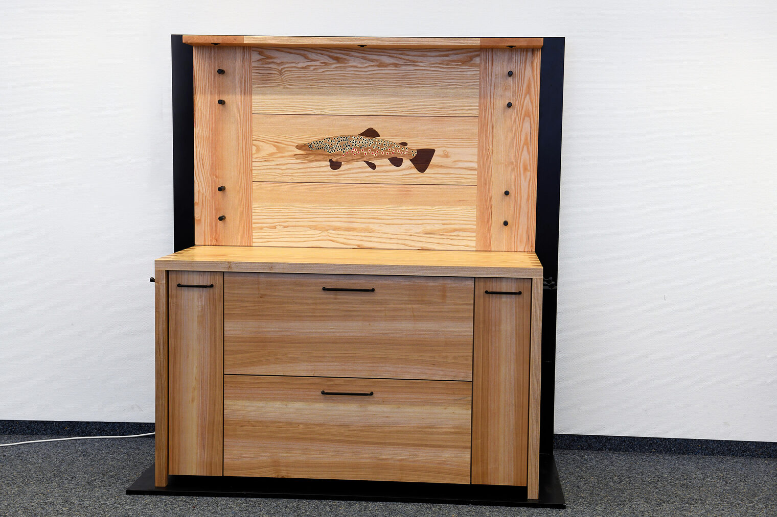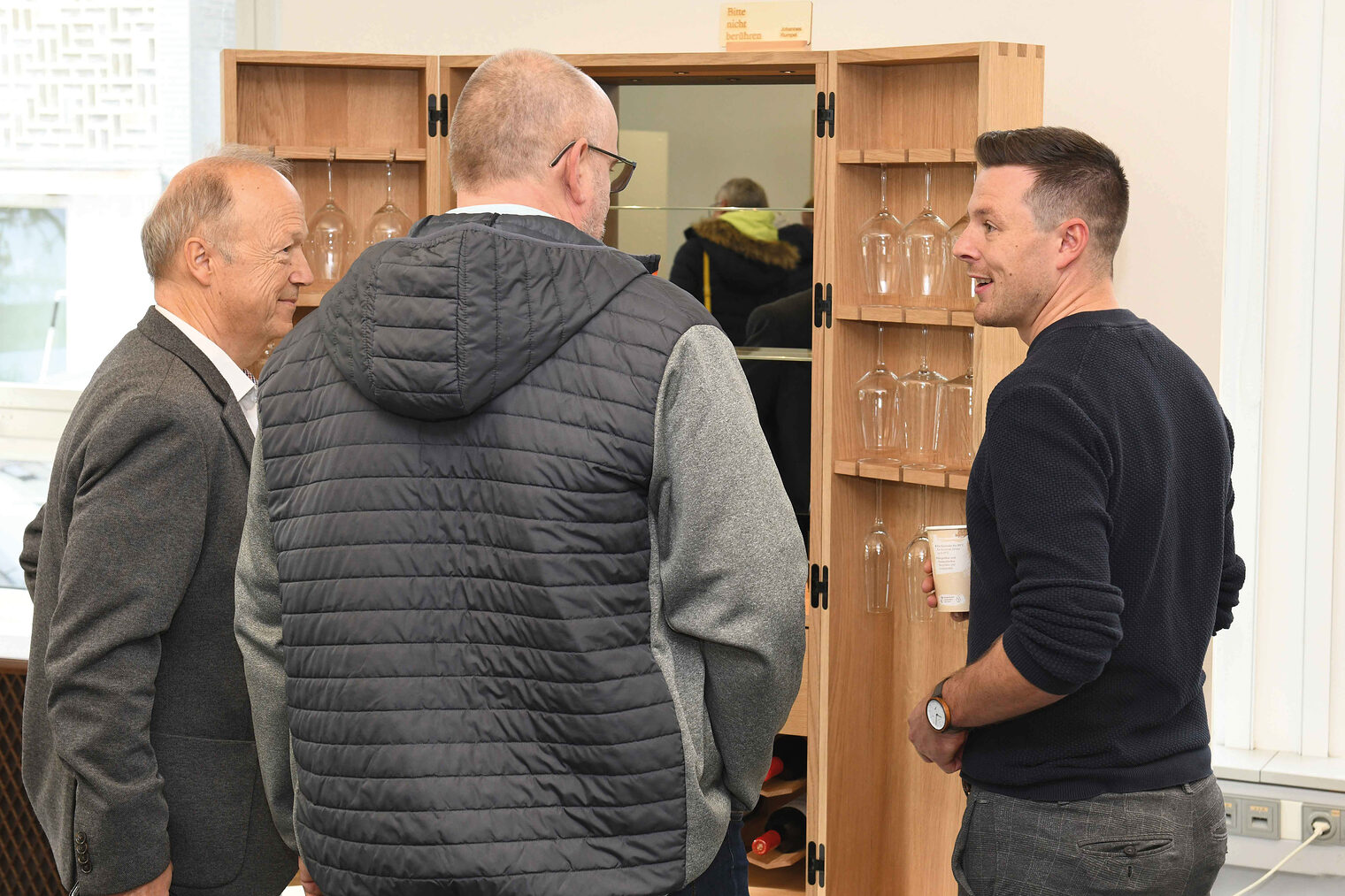 Die Schreinermeisterinnen und Schreinermeister brachten ihre ganz persönliche Handschrift ein: Zu sehen war ein Klavier aus Eschenholz, daneben lockte ein hängendes Weinregal zum Verweilen. Und direkt daneben ein großer geschwungener Schreibtisch, der genügend Platz für komfortables Arbeiten bietet. Jedes Meisterstück und jede/r Jungmeister/in erzählte seine eigene Geschichte.