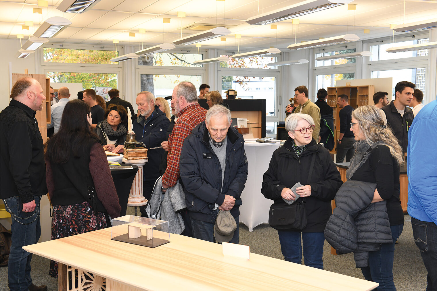 Am 16. Oktober luden die insgesamt 16 Absolventinnen und Absolventen zu einer Ausstellung ein, in der sie ihre Meisterstücke der Öffentlichkeit präsentierten. Zahlreiche Besucher nutzten die Möglichkeit, sich persönlich ein Bild von der meisterlichen Schreinerkunst zu machen.
